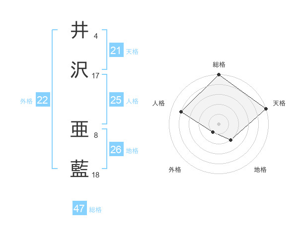 井沢 亜藍さんの総格は47画の5点!