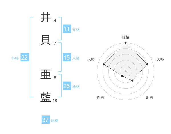 井貝 亜藍さんの総格は37画の5点!
