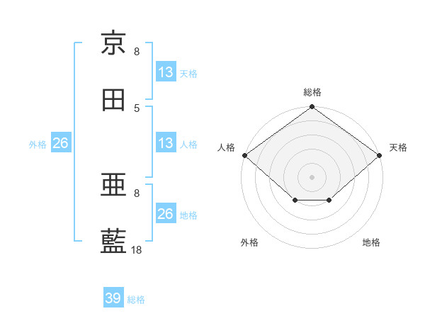京田 亜藍さんの天格は13画の5点!