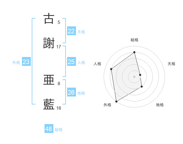 古謝 亜藍さんを姓名の画数から五運を鑑定