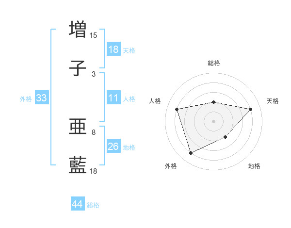 増子 亜藍さんの総格は44画の2点!