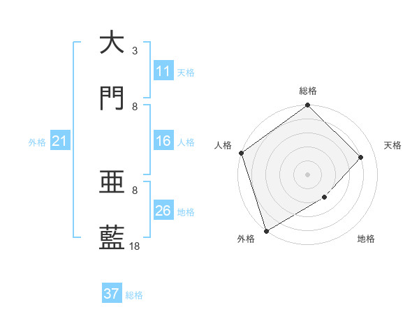 大門 亜藍さんの総格は37画の5点!