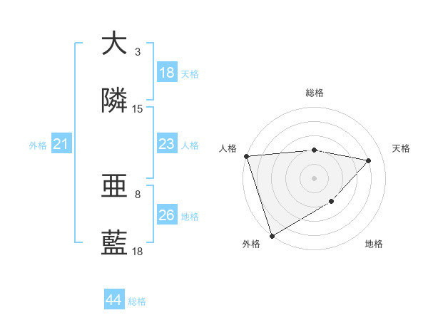 大隣 亜藍さんを姓名の画数から五運を鑑定