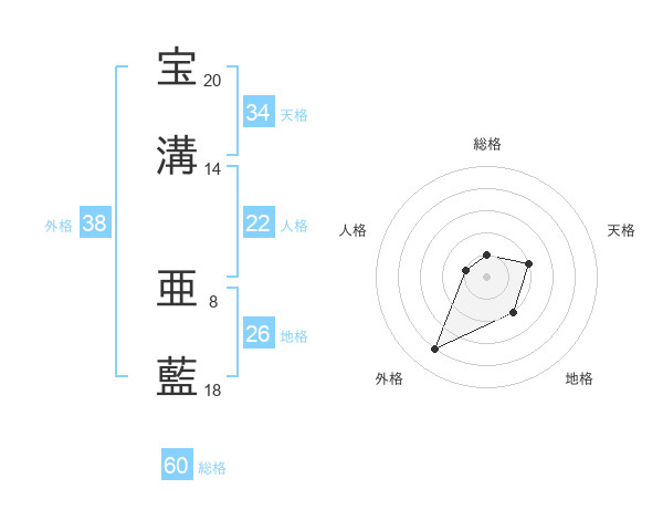 宝溝 亜藍さんの総格は60画の1点!