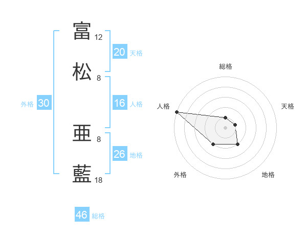 富松 亜藍さんを姓名の画数から五運を鑑定