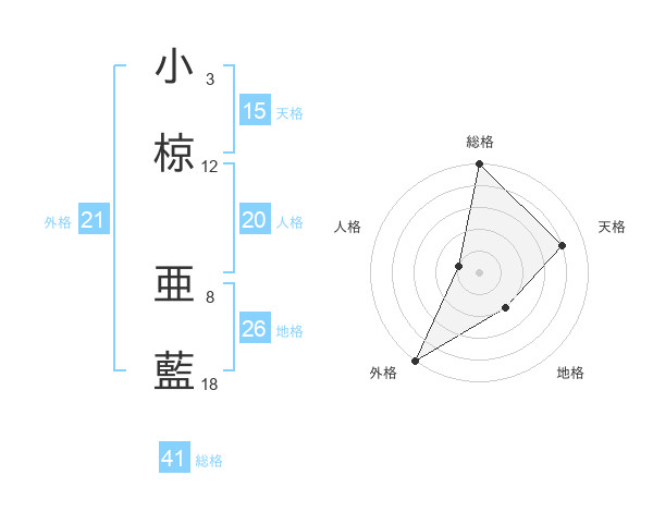 小椋 亜藍さんの外格は21画の5点!