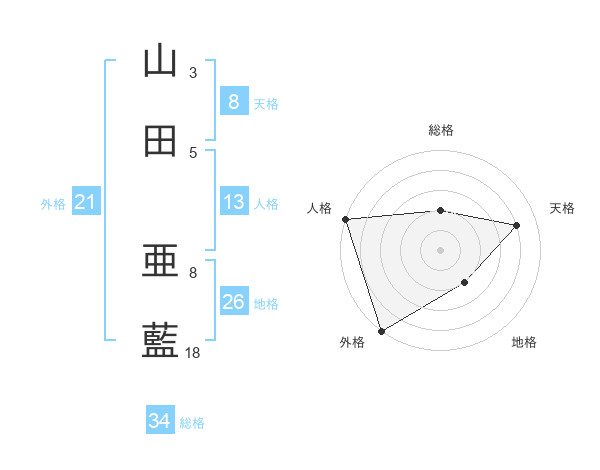 山田 亜藍さんを姓名の画数から五運を鑑定