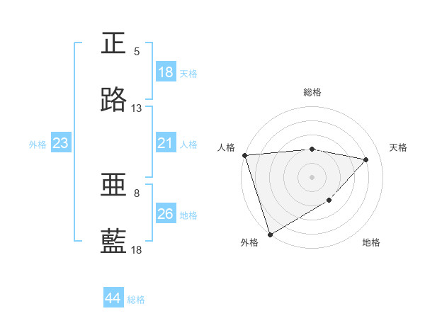 正路 亜藍さんを姓名の画数から五運を鑑定