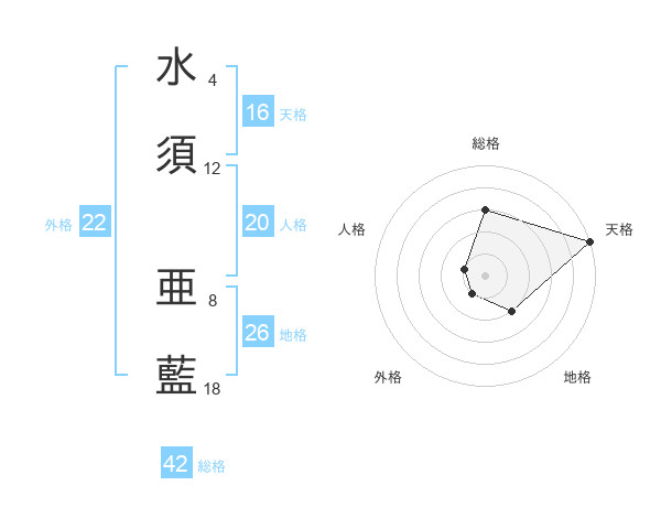 水須 亜藍さんの天格は16画の5点!