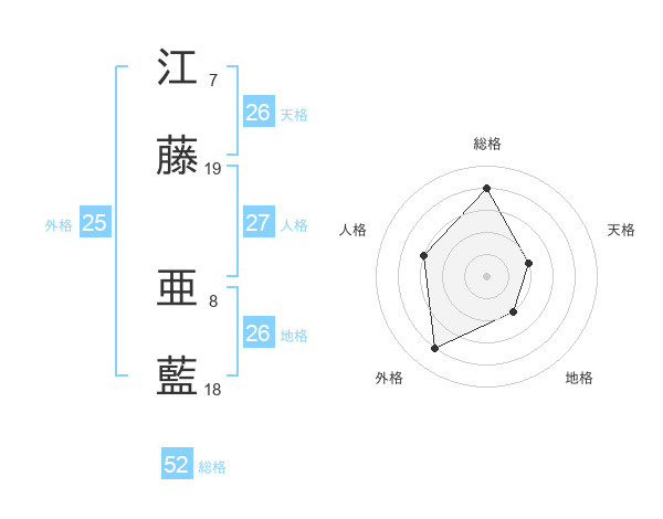 江藤 亜藍さんの総格は52画の4点!