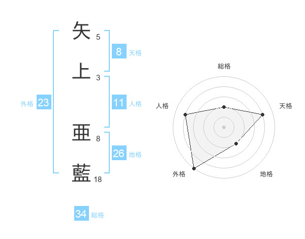 矢上 亜藍さんの外格は23画の5点!