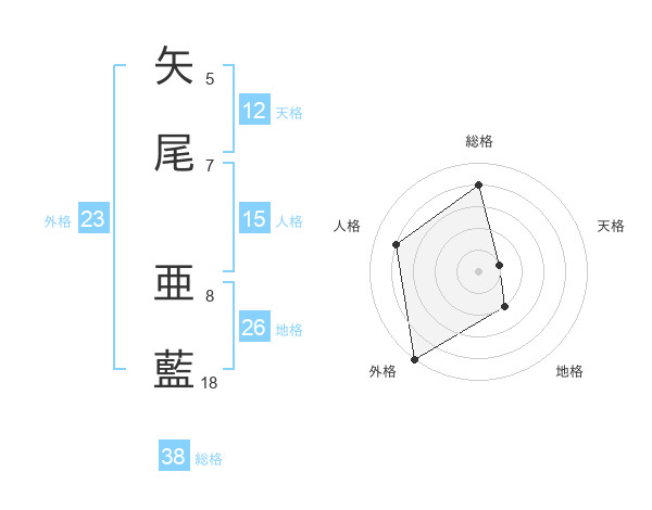 矢尾 亜藍さんを姓名の画数から五運を鑑定