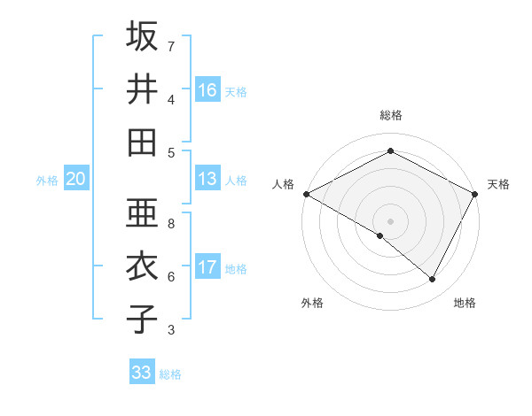 坂井田 亜衣子さんの総格は33画の4点!