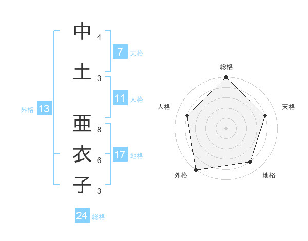 中土 亜衣子さんを姓名の画数から五運を鑑定