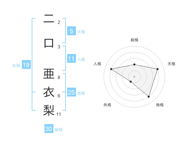 二口 亜衣梨さんを姓名の画数から五運を鑑定