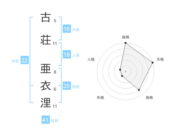 古荘 亜衣浬さんを姓名の画数から五運を鑑定