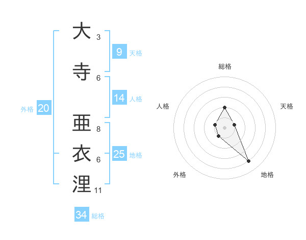 大寺 亜衣浬さんを姓名の画数から五運を鑑定