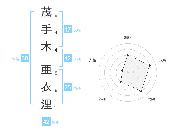 茂手木 亜衣浬さんを姓名の画数から五運を鑑定