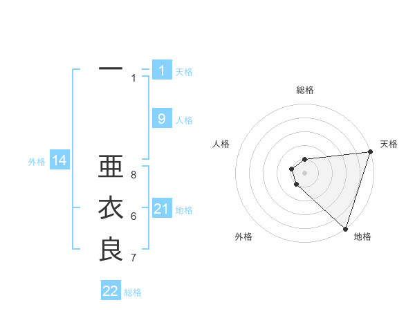 一 亜衣良さんの地格は21画の5点!