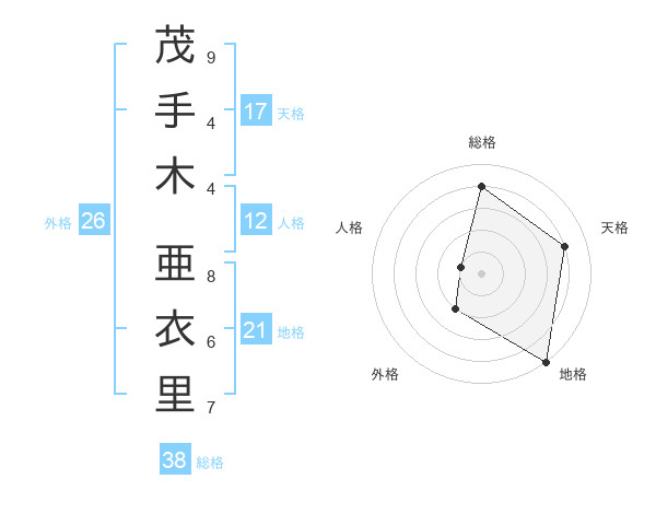 茂手木 亜衣里さんの天格は17画の4点!