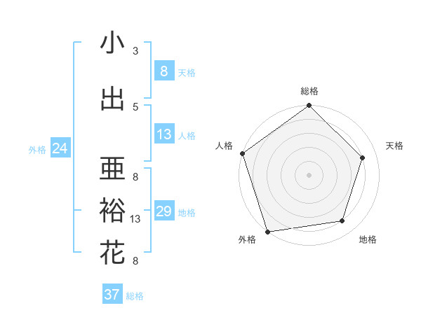 小出 亜裕花さんの総格は37画の5点!