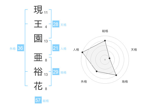 現王園 亜裕花さんを姓名の画数から五運を鑑定