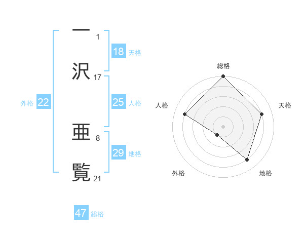 一沢 亜覧さんを姓名の画数から五運を鑑定
