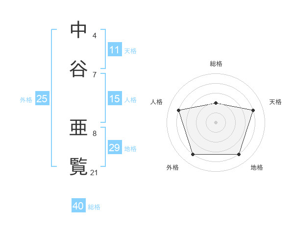 中谷 亜覧さんの天格は11画の4点!