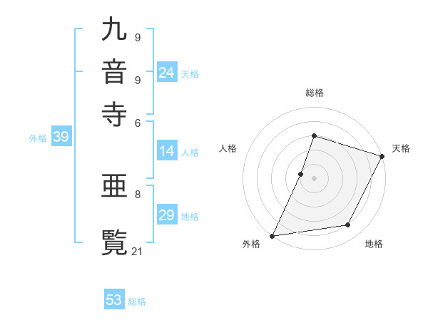 九音寺 亜覧さんを姓名の画数から五運を鑑定