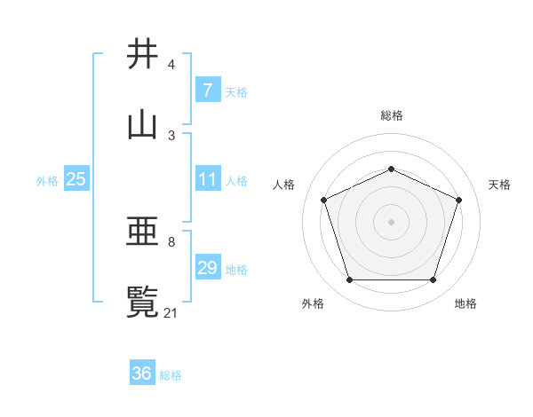 井山 亜覧さんの天格は7画の4点!