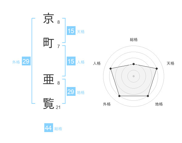 京町 亜覧さんの地格は29画の4点!