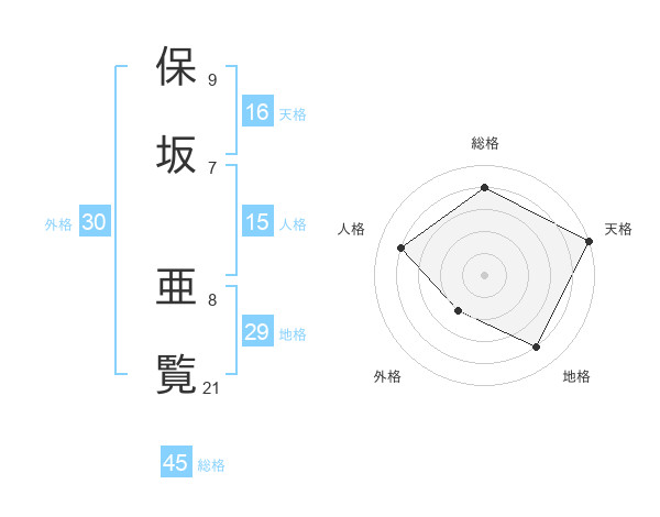 保坂 亜覧さんの総格は45画の4点!