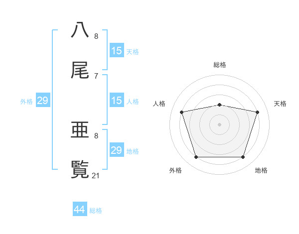 八尾 亜覧さんの総格は44画の2点!
