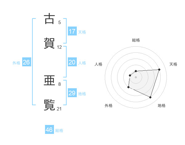 古賀 亜覧さんを姓名の画数から五運を鑑定