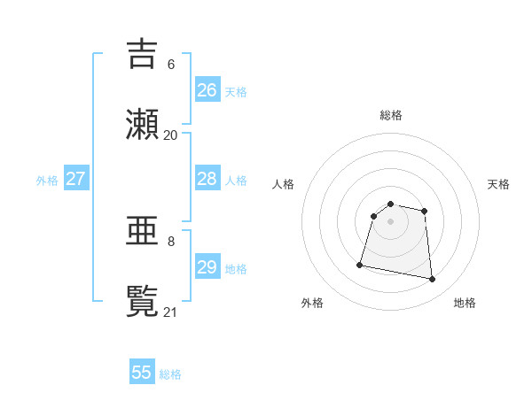 吉瀬 亜覧さんの総格は55画の1点!