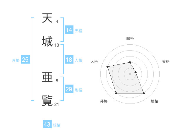 天城 亜覧さんの総格は43画の2点!