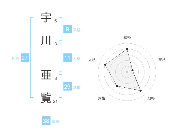 宇川 亜覧さんを姓名の画数から五運を鑑定