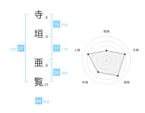 寺垣 亜覧さんを姓名の画数から五運を鑑定