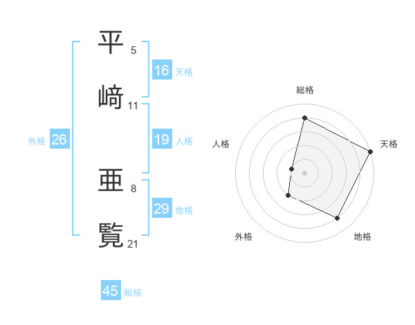 平﨑 亜覧さんを姓名の画数から五運を鑑定
