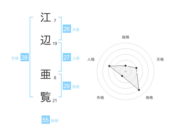 江辺 亜覧さんの総格は55画の1点!