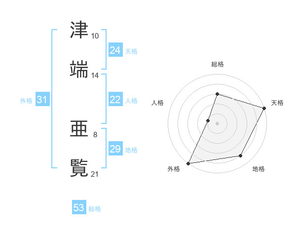 津端 亜覧さんを姓名の画数から五運を鑑定