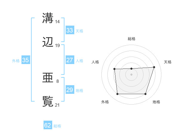 溝辺 亜覧さんの総格は62画の1点!