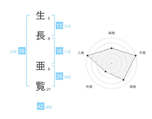 生長 亜覧さんを姓名の画数から五運を鑑定