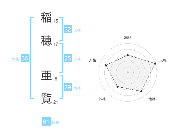 稲穂 亜覧さんの総格は61画の3点!
