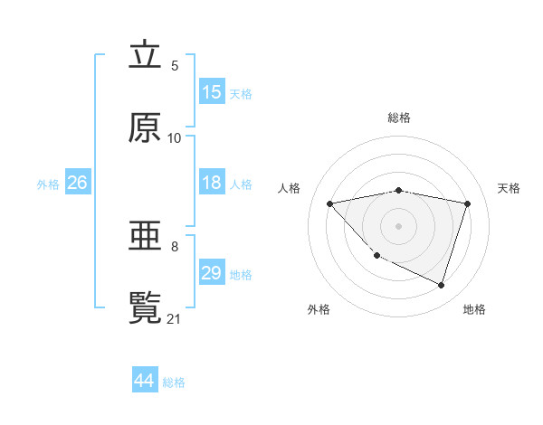 立原 亜覧さんの総格は44画の2点!