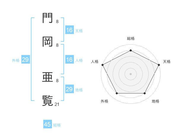 門岡 亜覧さんの総格は45画の4点!