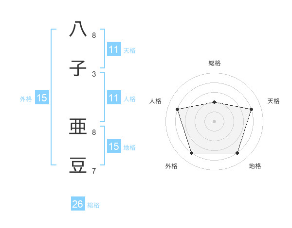 八子 亜豆さんを姓名の画数から五運を鑑定