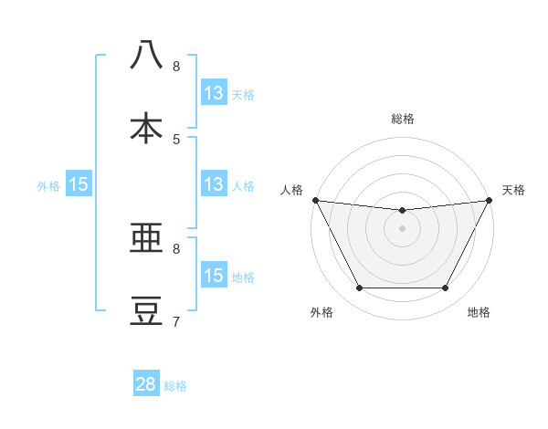 八本 亜豆さんの天格は13画の5点!