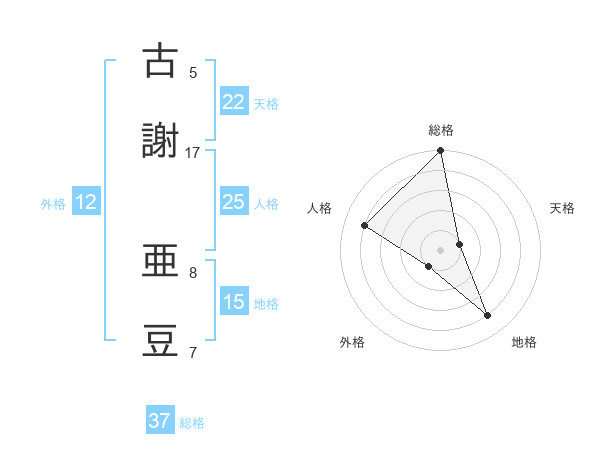 古謝 亜豆さんの総格は37画の5点!