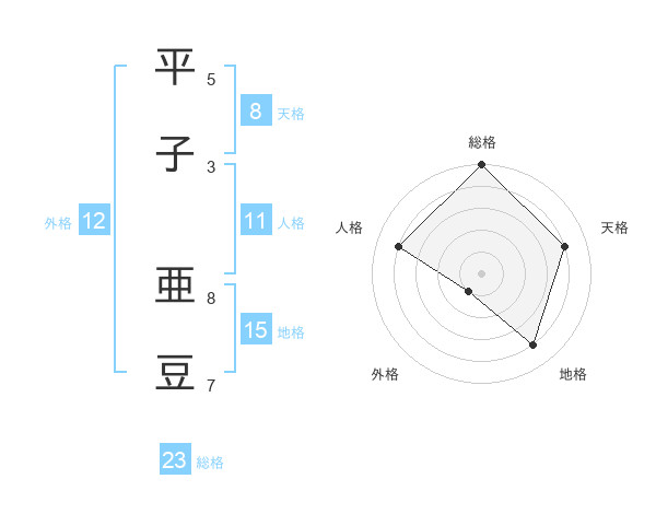 平子 亜豆さんの総格は23画の5点!